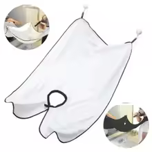 This cloth material for haircut and beard is polyester taffeta, reusable, easy to clean and easy to dry.